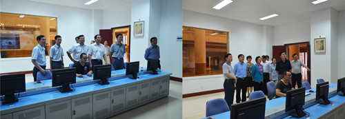 (圖為省藥監局領導在仁和863科技園工業控制調度指揮中心視察)